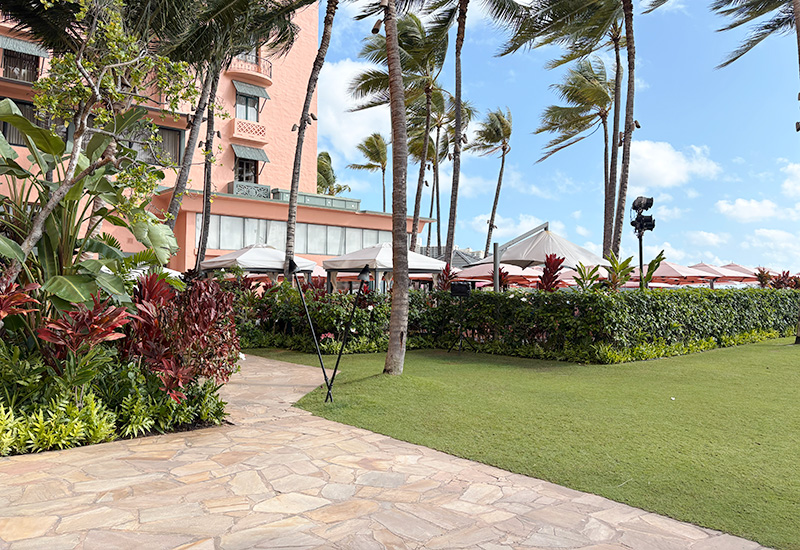 ワイキキビーチのど真ん中に建つロイヤルハワイアンホテルのお庭に敷かれている乱形石の舗装なんですけど、これがめっちゃカッコいいんです!